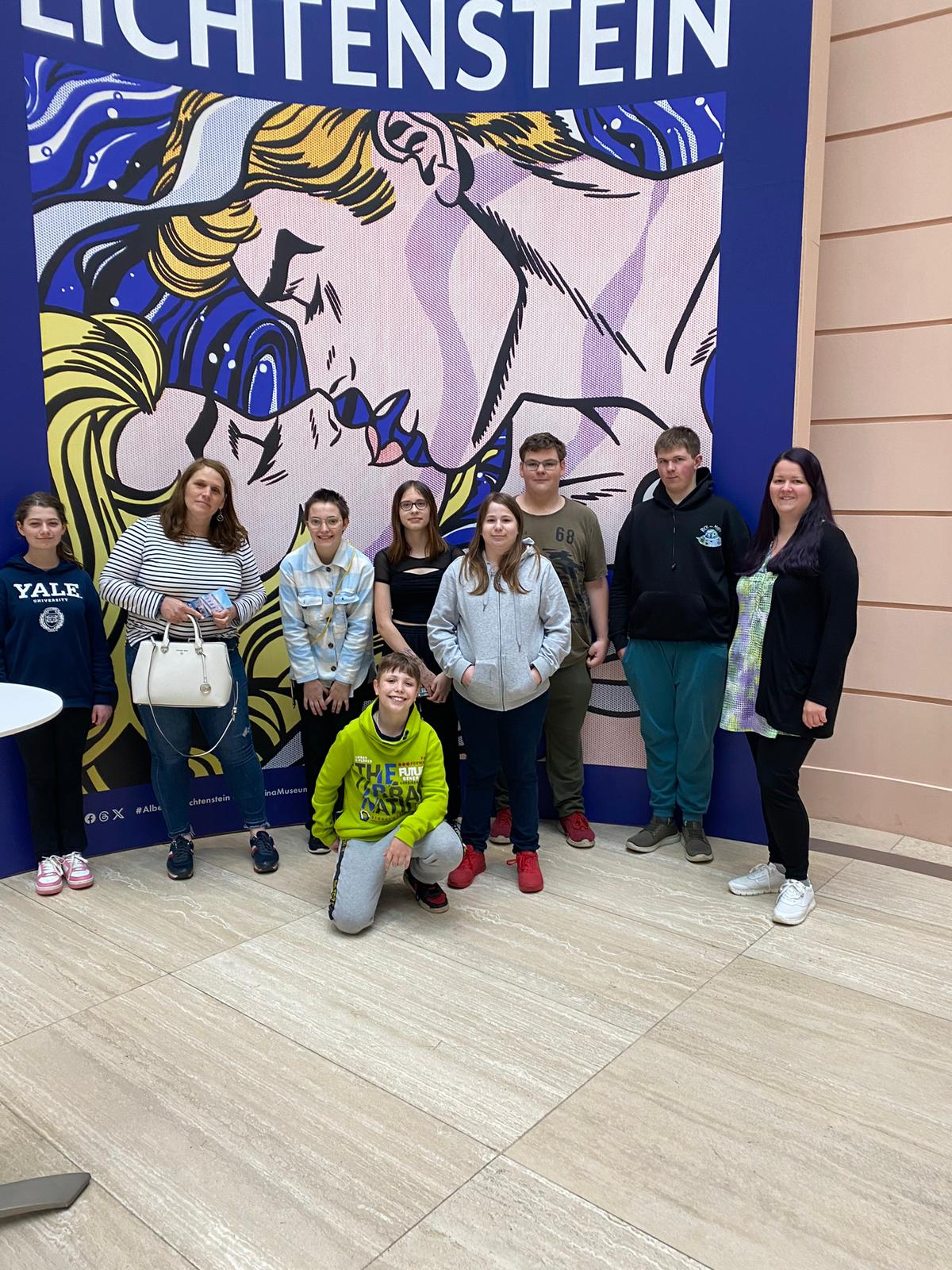 Wir besuchten mit Frau Otahal und Frau Scheiner die spannende Ausstellung „Roy Liechtenstein – zum 100. Geburtstag“ in der Albertina und waren begeistert von den großformatigen Drucken, Gemälden und Skulpturen des Künstlers. Zuvor hatten wir uns im Unterricht intensiv mit dem Thema PopArt beschäftigt und uns auch an eigenen Werken versucht.
