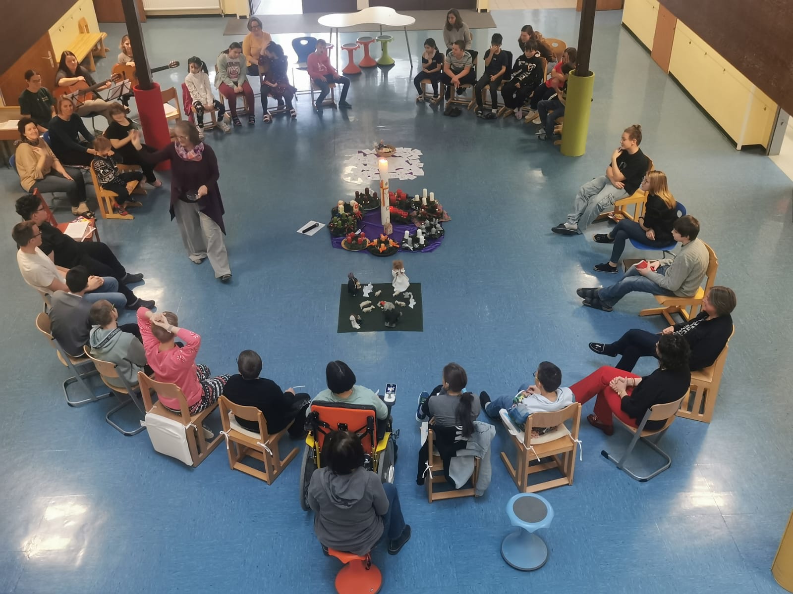 und deshalb gab es am Montag (1.12.) die Adventkranzsegnung – mit Gesang, instrumentaler Begleitung und Fürbitten. Außerdem gratulierte Frau Bruckner, die Fachinspektorin für Religion, unsere Religionslehrerin, Frau Wieland, zu ihrem besonderen Geburtstag. Das war ein schöner Start in die erste Dezemberwoche!