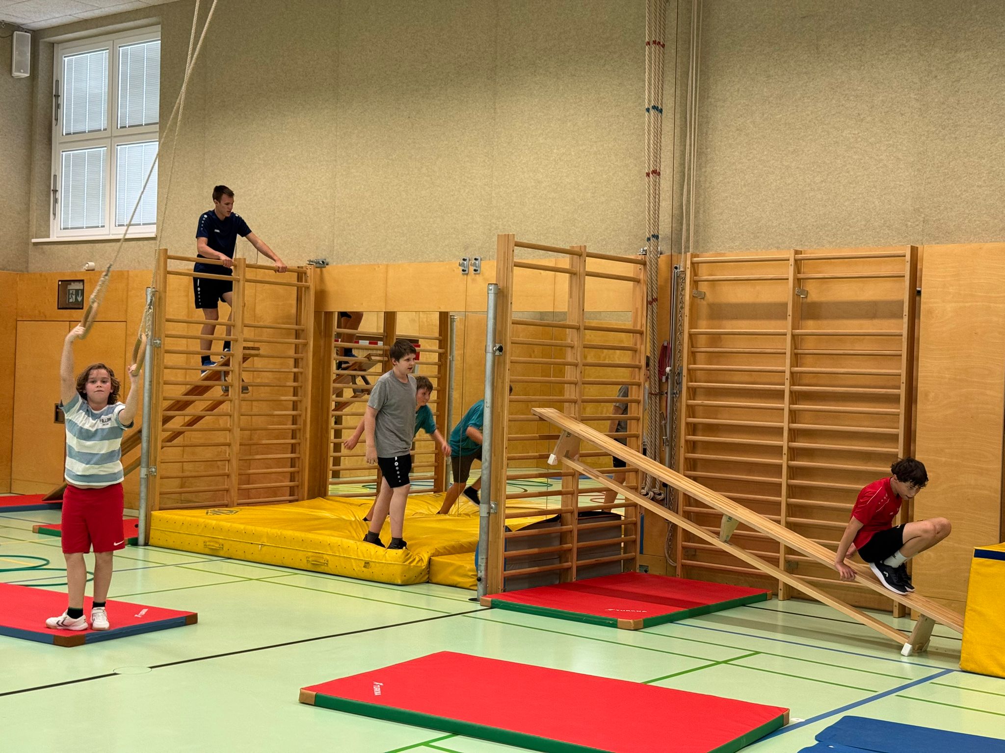 Die Kinder der 1 A, 1 MS und 5 E hatten viel Spaß in der Turnstunde mit ihrer selbst geplanten Hindernisbahn.